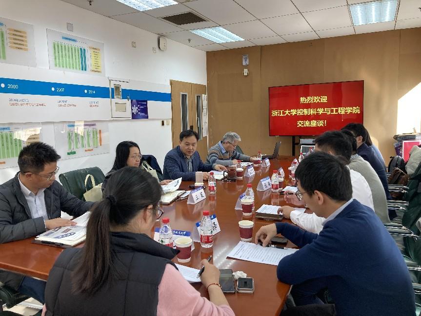 院长胡庆雷主持,胡庆雷院长详细介绍了学院的发展沿革、学科建设、科研方向、平台基地、人才培养、师资队伍、科研成果和未来发展的思考和举措。浙江大学控制科学与工程学院也详细介绍了学院的基本情况、学科建设、科研方向及近年来取得的科研成果。