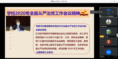 召开了学习学校2020年全面从严治党工作会议精神全院大会,同时分党委书记王少萍做了“党风廉政建设永远在路上”的专题党课,会议通过视频会议方式召开,学院全体教职工和学生党支部书记参加了本次会议。